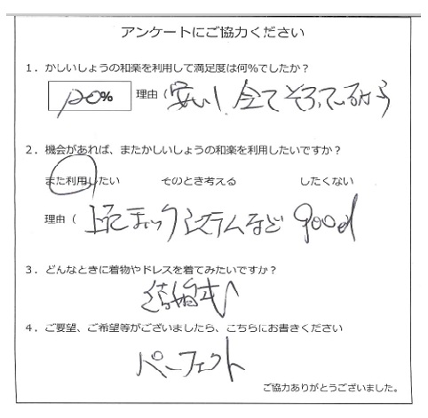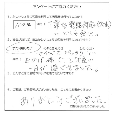 この度はご利用いただきありがとうございます。満足していただけて、私達も大変嬉しいです。またのご利用お待ちしております。
