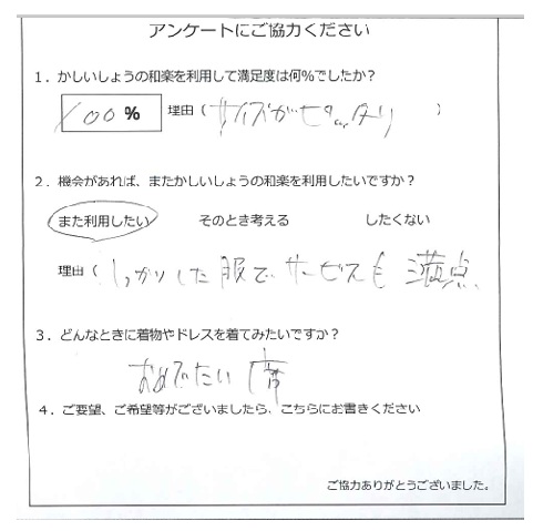 この度はご利用頂きありがとうございます。素敵な一日のお手伝いが出来、私達も大変嬉しいです。ありがとうございます。またのご利用お待ちしております。