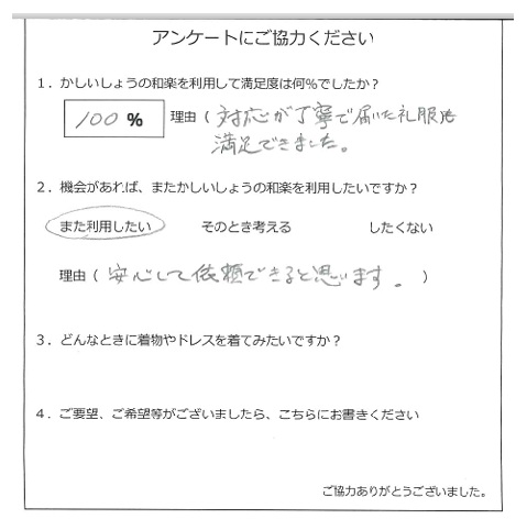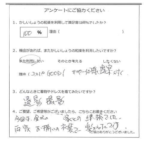 この度はご利用頂きありがとうございます。ご両家様でのご利用、ありがとうございます。ご両家様でレンタルしていただく場合には、ネクタイ等の小物を違わせてご用意させて頂きます。またのご利用お待ちしております。