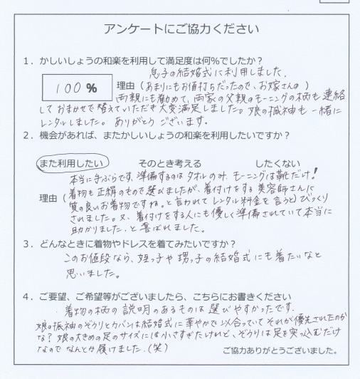 今回初めてモーニングと留袖をレンタルさせていただきました。