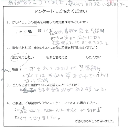 2025年11月22日 S・M様 青森県 モーニングA5/黒留袖K55