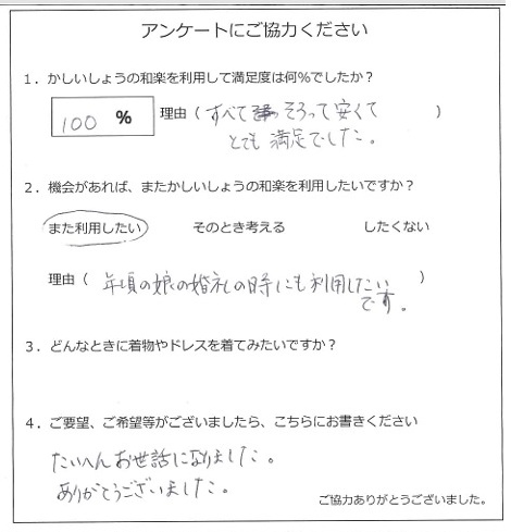 なんの不安もなく当日を迎えれたことを感謝しています!