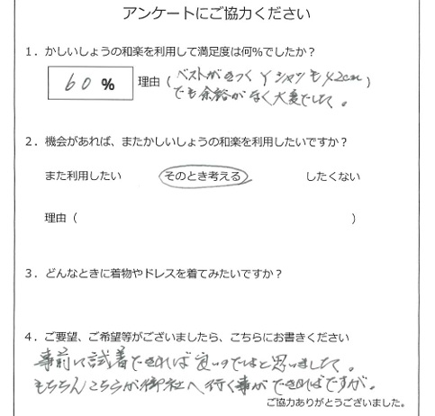 機会があれば、是非またお願いしたいし、知人にも紹介したいと思