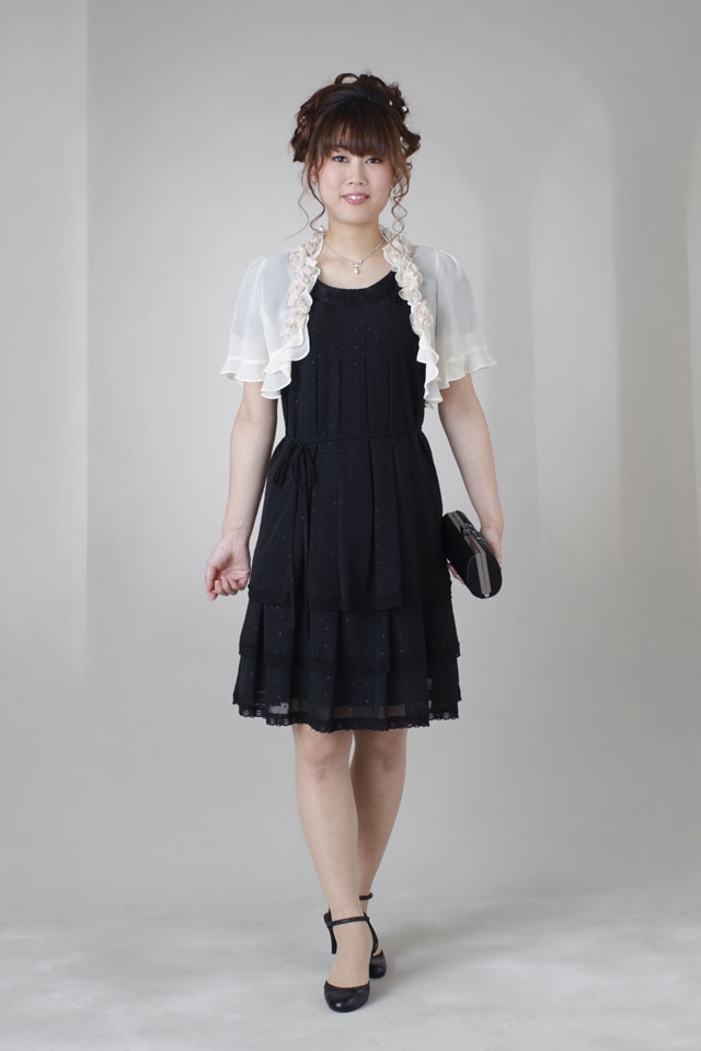 - 黒水玉生地 半袖ワンピース 洋服サイズ:F マタニティ可 表地:ポリエステル