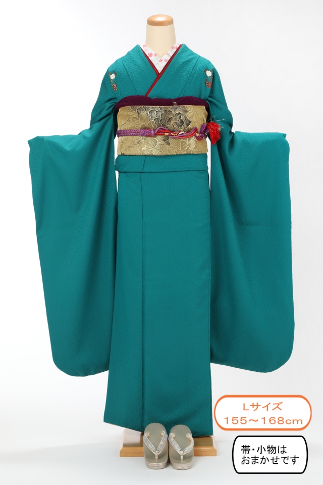 fk018【レンタル】エメラルドグリーン地模様に花紋