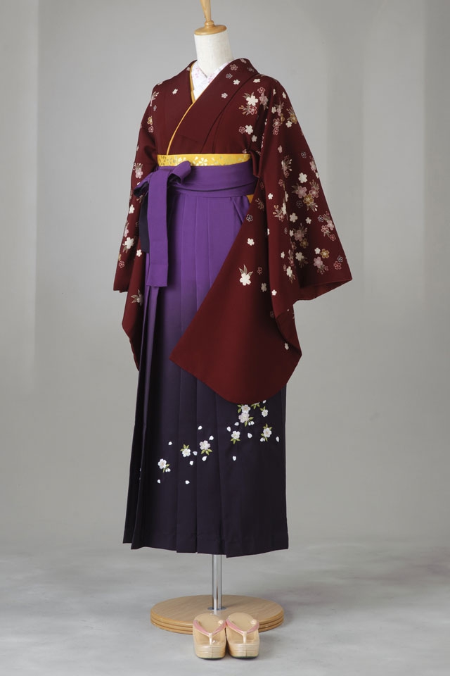あずき色 胸元桜ちらし