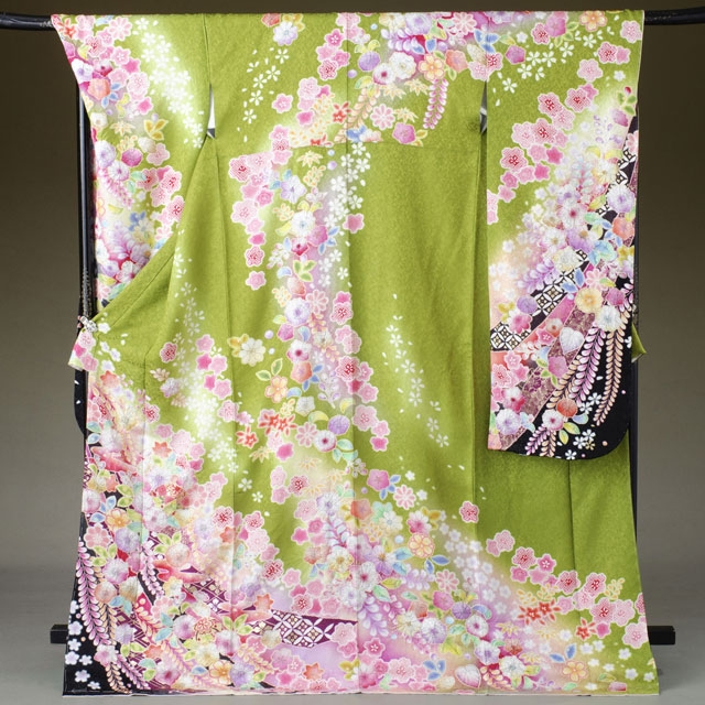 fs298【振袖レンタル】黄緑に藤の花(裄長め)