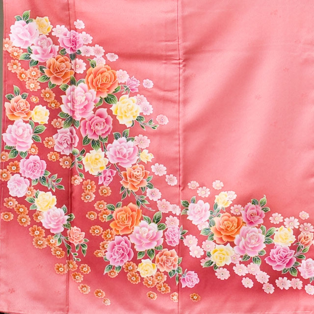 ik08【色留袖レンタル】濃いピンクにバラの花 五つ紋