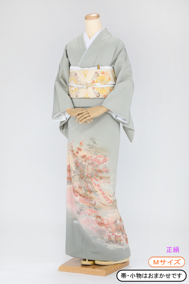 is06【色留袖レンタル】うす緑に小花 三つ紋