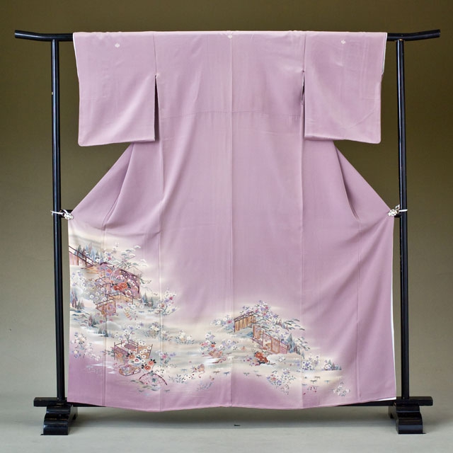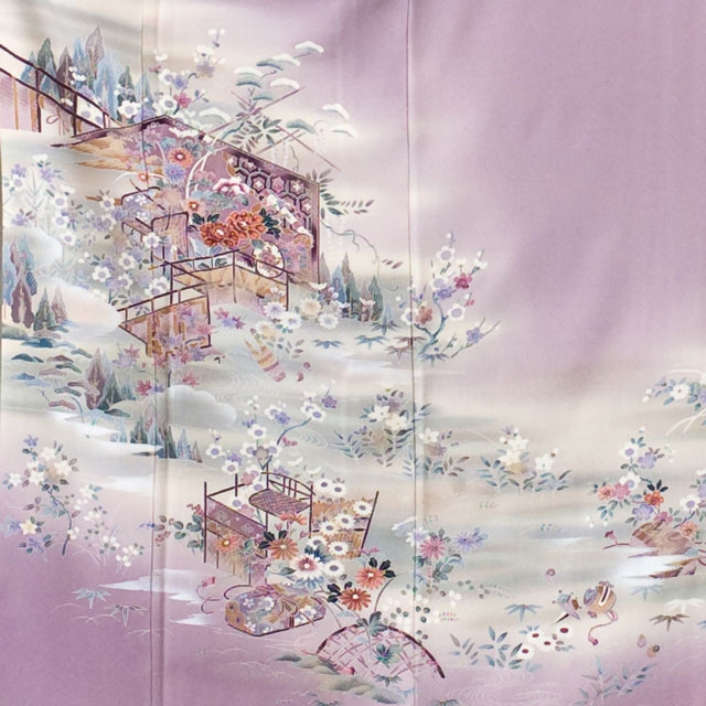 is01【色留袖レンタル】淡紫にやさしい花 (裄 短め) 三つ紋